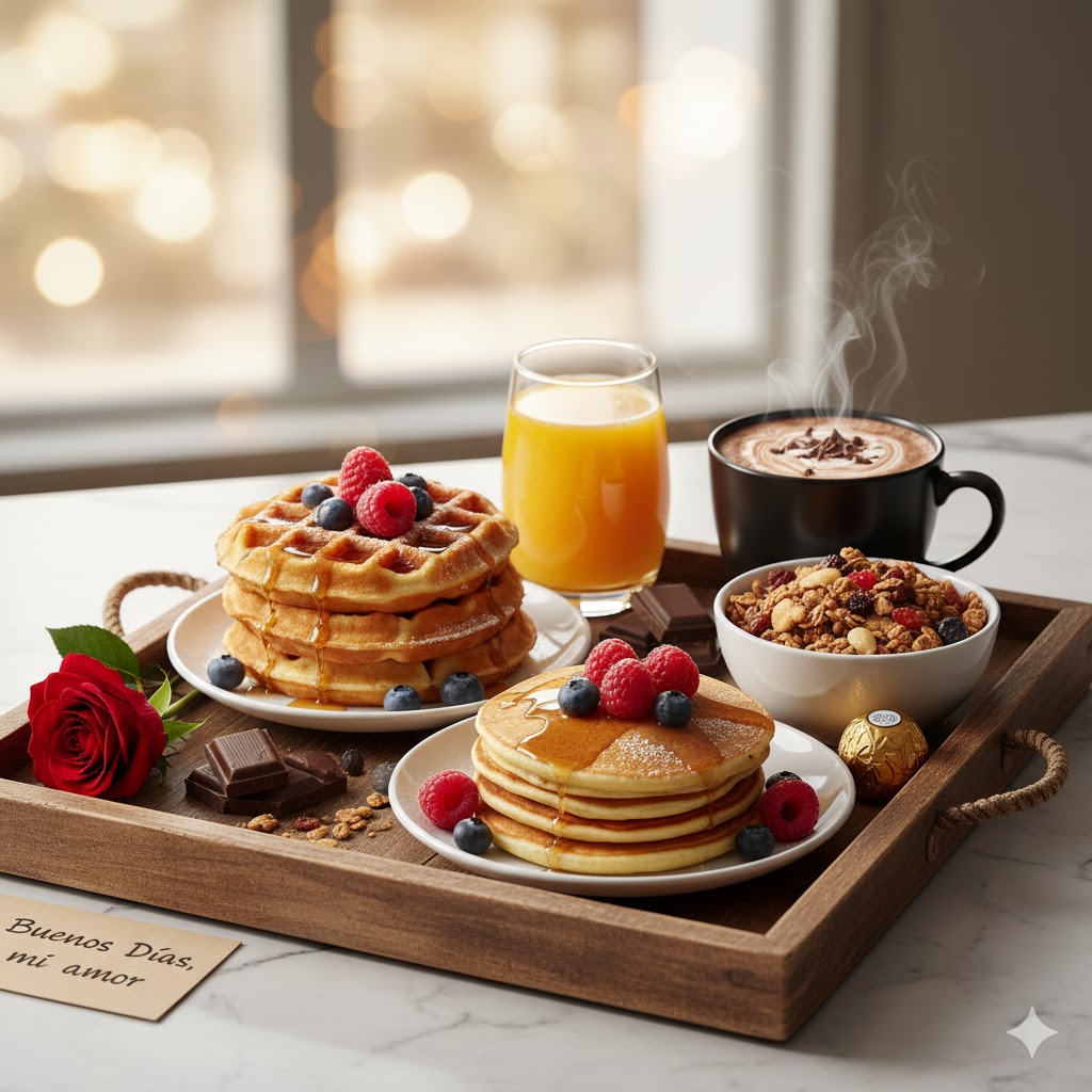 Despierta tus sentidos y endulza tus mañanas con la magia de nuestros desayunos sorpresa, repletos de recetas irresistibles. Tanto si eres amante de los suaves y esponjosos waffles o prefieres la dulzura de los pancakes caseros, cada opción viene acompañada de una crujiente granola que añade la textura perfecta y, por supuesto, una selección de deliciosos chocolates que transforman cada bocado en un auténtico festín. Estas recetas están diseñadas para deleitar tu paladar y convertir cualquier día en una celebración, dejando una sonrisa duradera y un recuerdo inolvidable.